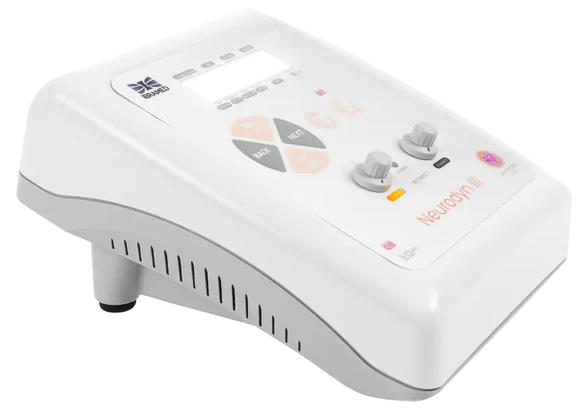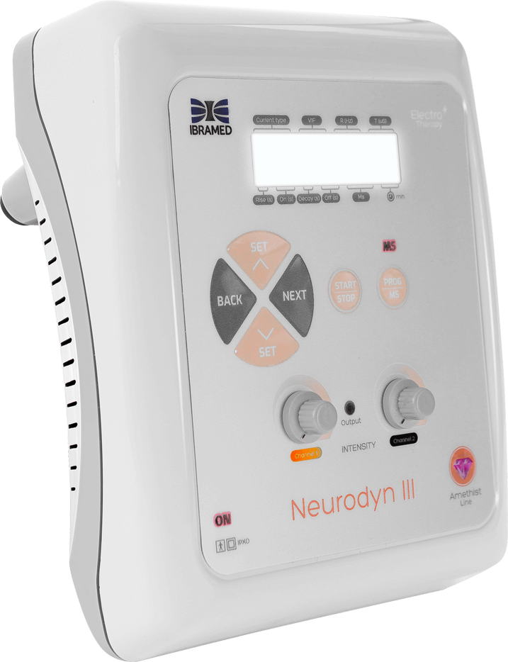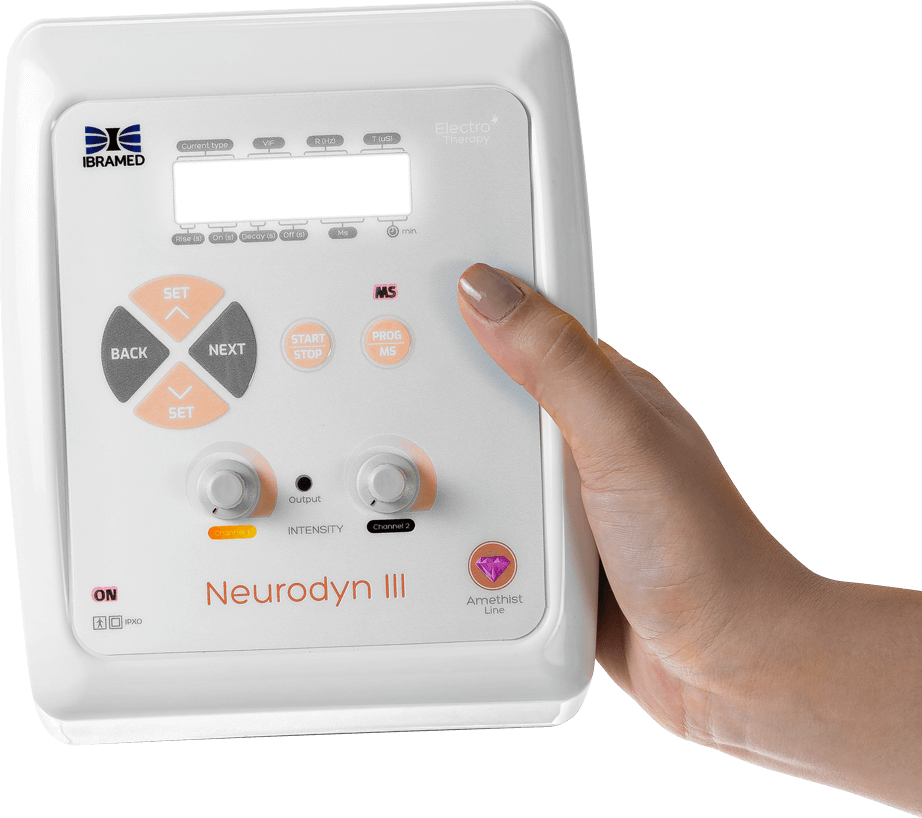 O Neurodyn III é um equipamento portátil e pequeno de simples operação atuando na reabilitação física. Possui um display de LCD Blue Light com teclas soft touch.