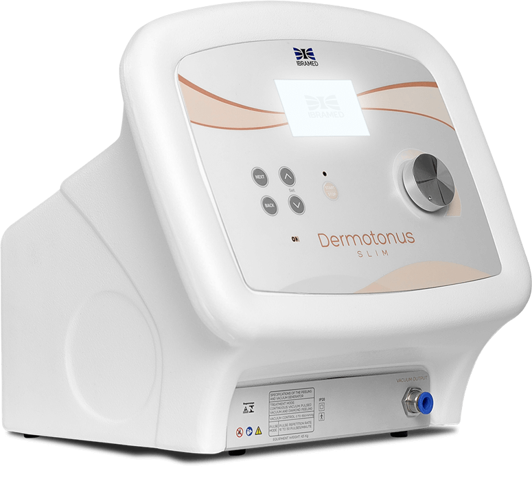 Dermotonus Slim é um equipamento microcontrolado de alta tecnologia, utilizado em técnicas como vacuoterapia, endermoterapia e endermologias e peeling de diamante (microdermoabrasão) indicadas para fotorejuvenescimento, redução das linhas de expressão (rugas finas e médias), tratamento de hiperqueratoses, tratamento de estrias, desordens pigmentares como melasmas, hipercromias e manchas, cicatrizes e poros dilatados e microcomedões.
