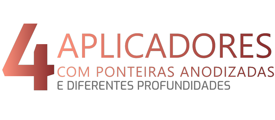 A troca rápida dos aplicadores otimiza o tempo e proporciona maior conforto, basta deixar as ponteiras preparadas e trocar conforme o uso. Além disso, as ponteiras dos aplicadores recebem um banho de anodização, garantindo maior durabilidade e qualidade dos materiais!